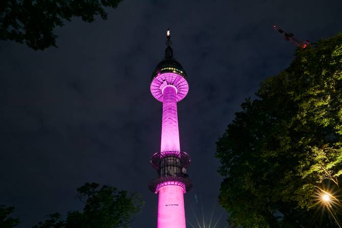 - 남산타워 상단 핑크 네온 사인 배경