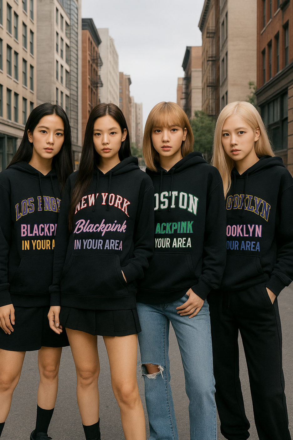 대표 제품 중 하나는 ‘NEW YORK’과 ‘BLACKPINK IN YOUR AREA’ 문구가 새겨진 NBA 뉴욕 닉스 후디입니다.