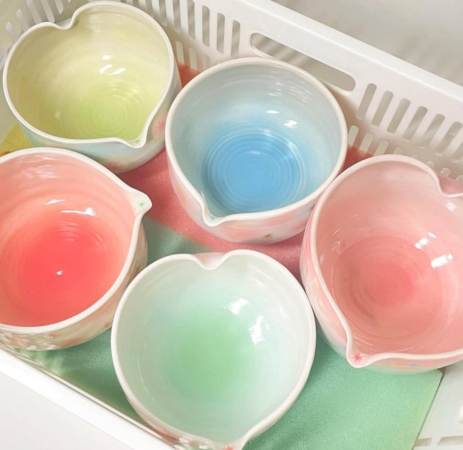 화사한 파스텔 톤과 감각적인 패턴, 부드러운 곡선이 어우러진 찻잔과 다기세트는 말차 러버들의 마음을 단숨에 사로잡고 있습니다.