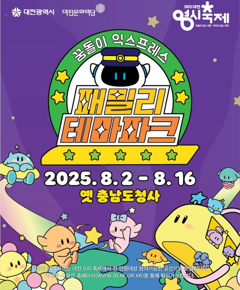 2025 대전 0시축제에서 단연 놓치지 말아야 할 공간, 바로 **'꿈돌이 익스프레스 패밀리 테마파크'**입니다.