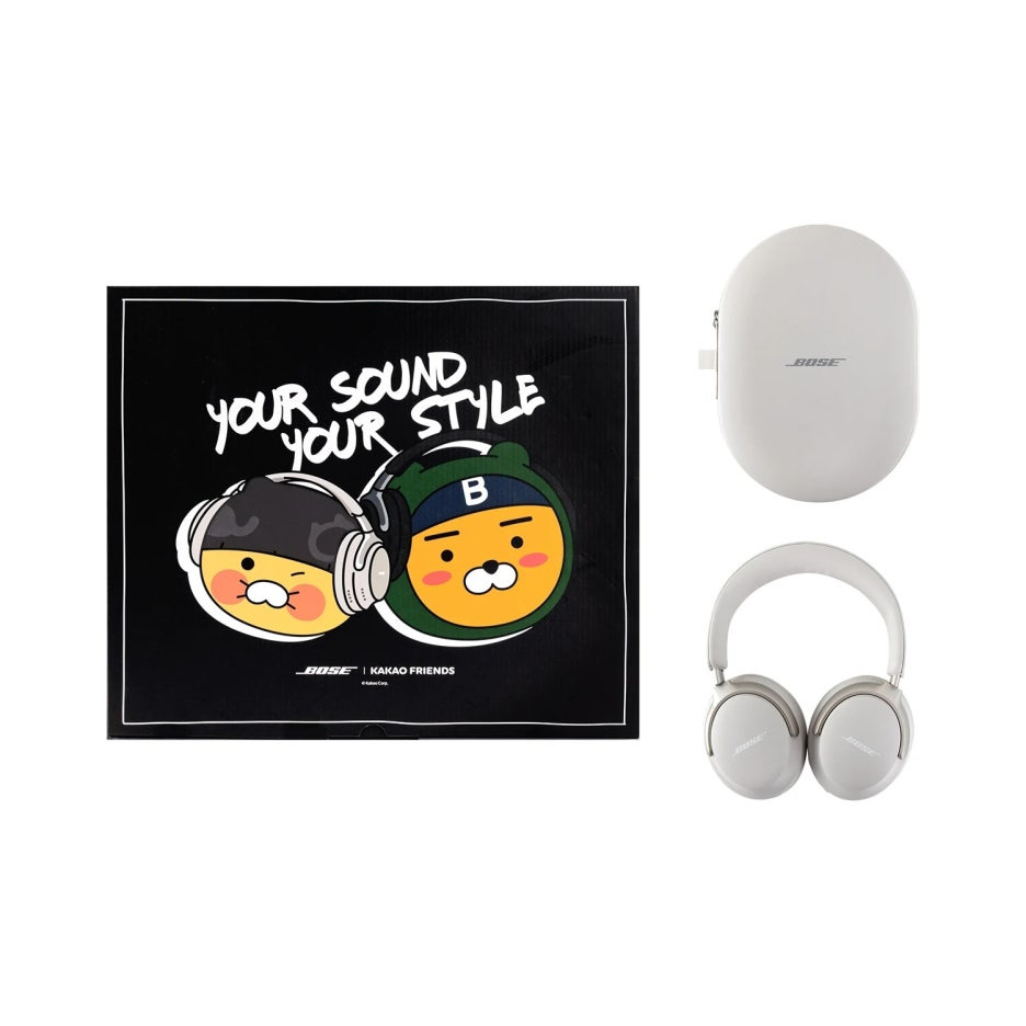 - 구성: 보스 QC 울트라 헤드폰 + 카카오프렌즈 한정판 굿즈 5종 (아크릴 키링, 스트링백, 데코 스티커, 러기지택, 목베개)