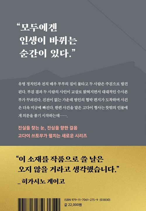 히가시노 게이고는 이번에도 독자에게도 충분한 단서를 제공하며, 주인공과 함께 추리하는 몰입형 구성을 보여준다.