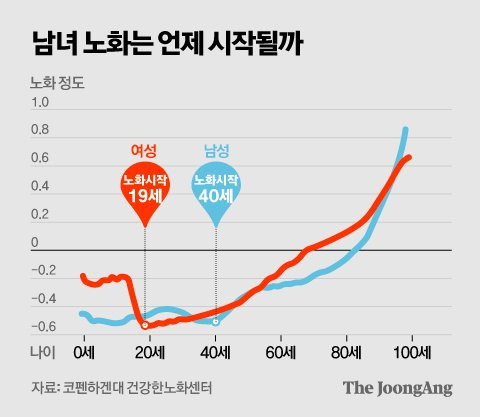 생물학적 나이 < 실제 나이, 관리 잘 되고 있음