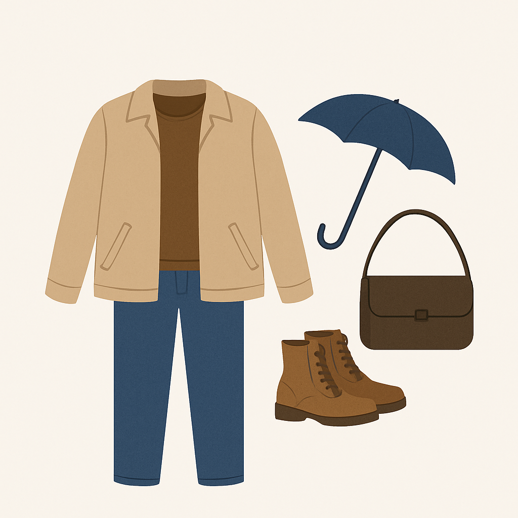 - 상의: 얇은 긴팔 니트 + 얇은 방수 재킷