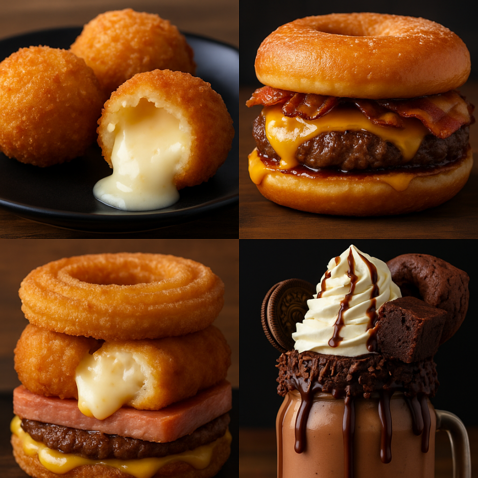 맛있고 고칼로리인 음식은 많지만, 오늘 소개할 음식은 차원이 다릅니다. 칼로리를 넘어서 상상력까지 튀긴 음식들, 이른바 ‘괴식’입니다. 미국 페어부터 아시아 푸드트럭까지, 인류의 창의성이 만든 고칼로리 끝판왕들을 모았습니다.