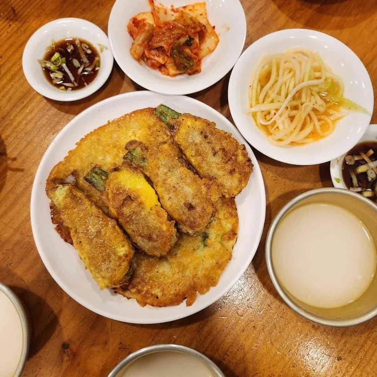 - 특징: 얇고 바삭하게 구운 빈대떡. 고추전과 반반 가능