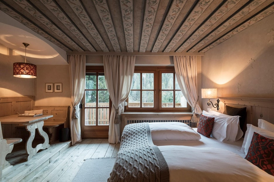 로사 알피나는 단 26개의 객실과 스위트룸을 운영합니다. 내부는 전통 목재와 모던한 아트워크가 어우러져 아늑한 분위기를 자아냅니다. 프라이빗 스파, 와인 셀러, 벽난로, 발코니 뷰 등 각 객실마다 특별한 경험을 선사합니다.