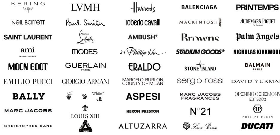 - 글로벌 명품: 돌체앤가바나, 발렌시아가, 페라가모, 메종 마르지엘라, 로에베, 아크네 스튜디오 외 다수