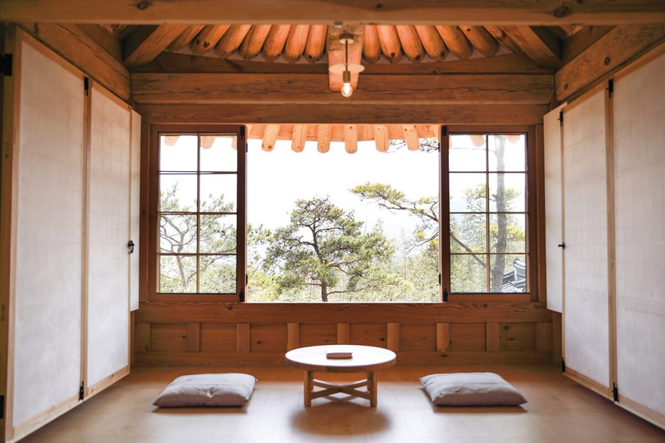 대나무 정원, 아치형 창, 천연 원목 가구 등 디테일이 살아있는 공간.
